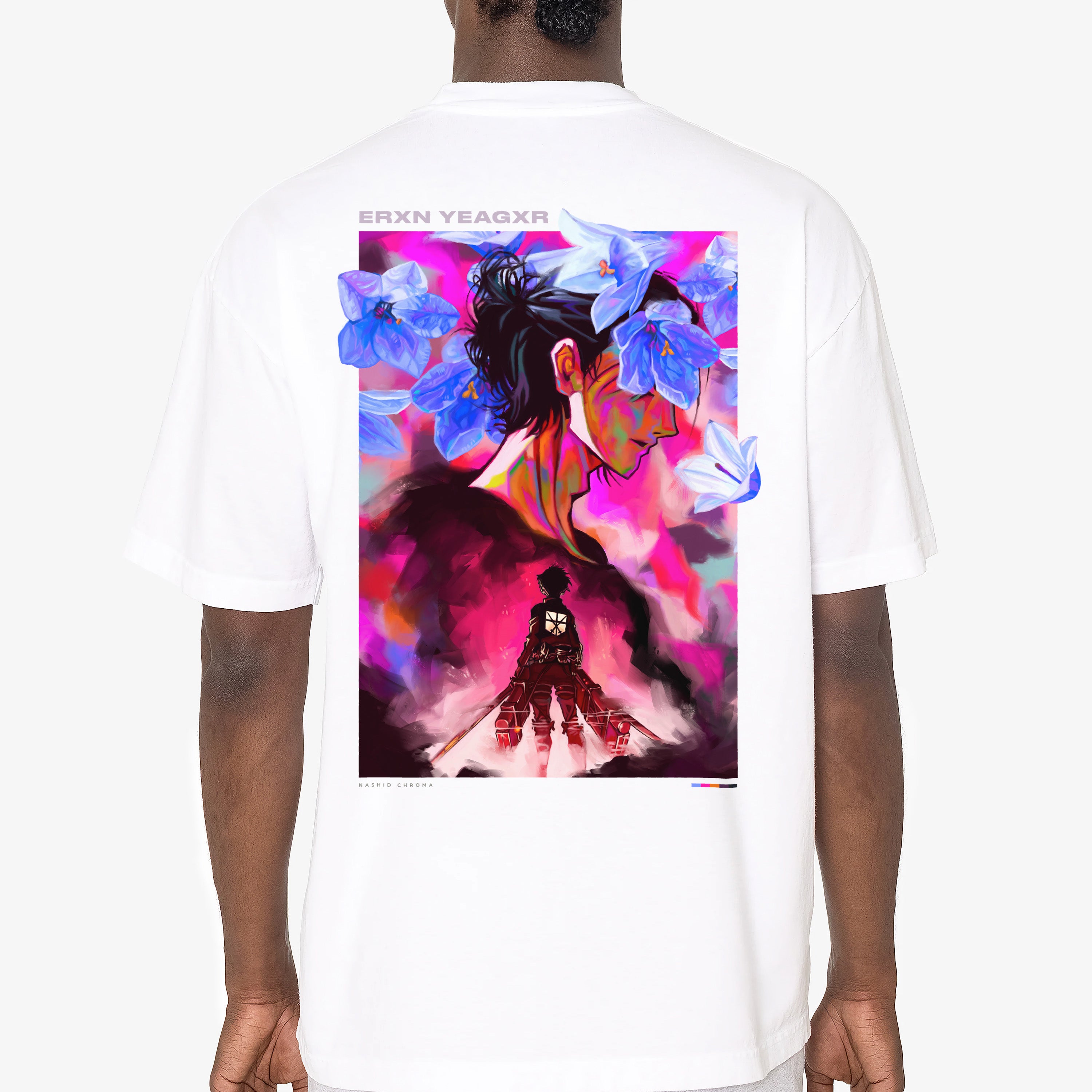 The piece is embellished with a premium silicone Nashid Chroma logo on the front, and an oversized "borderless" print of ERXN YEAGXR on the back. The size makes for an impressive statement piece in contrast to clean tee.
