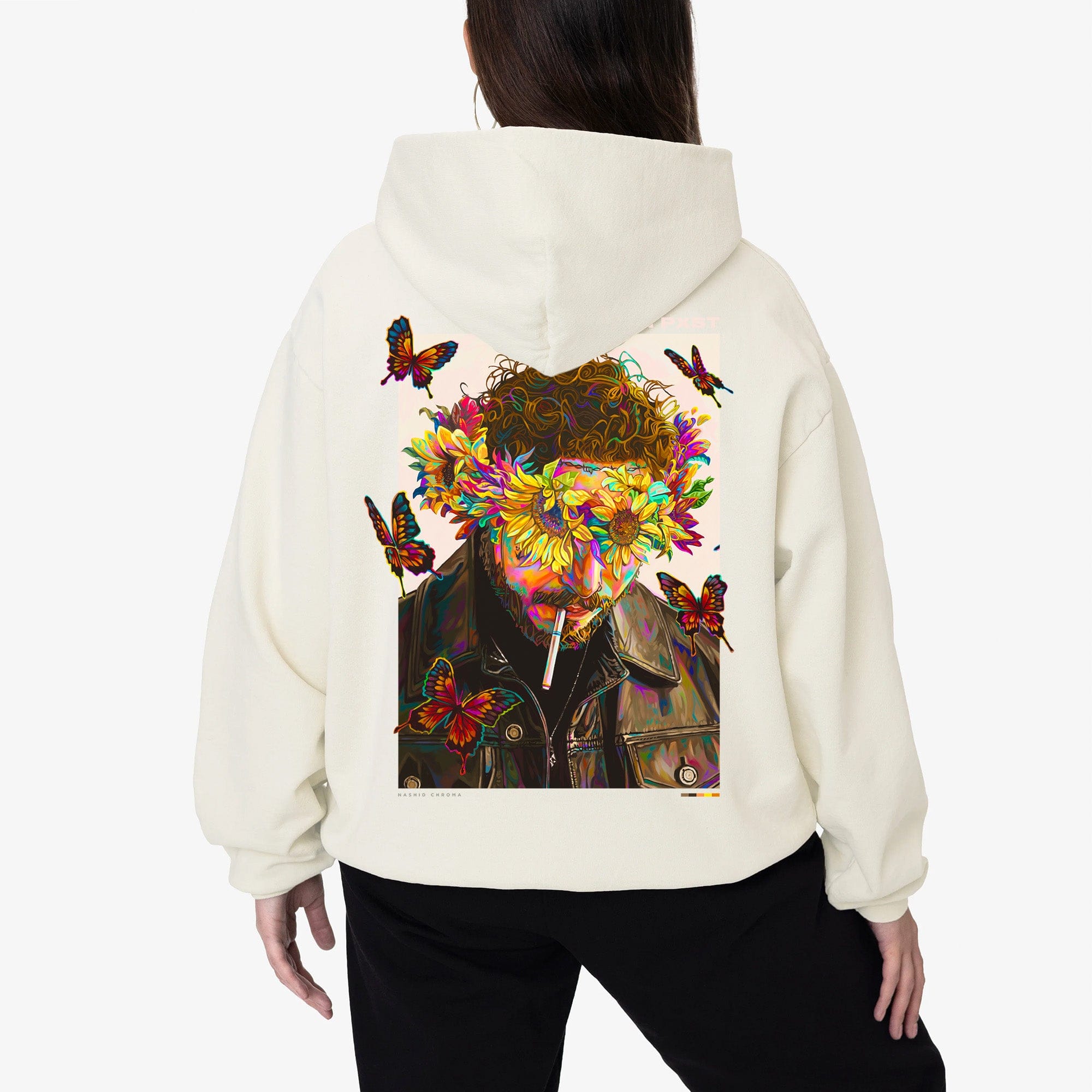 This hoodie features an iconic drop shoulder silhouette and is made of 480 GSM cotton fabric that's both soft and heavy on the body.