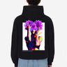 The piece is embellished with a premium silicone Nashid Chroma logo on the front, and an oversized "borderless" print of PXRPLE RAIN on the back. The size makes for an impressive statement piece in contrast to the crisp black cotton.