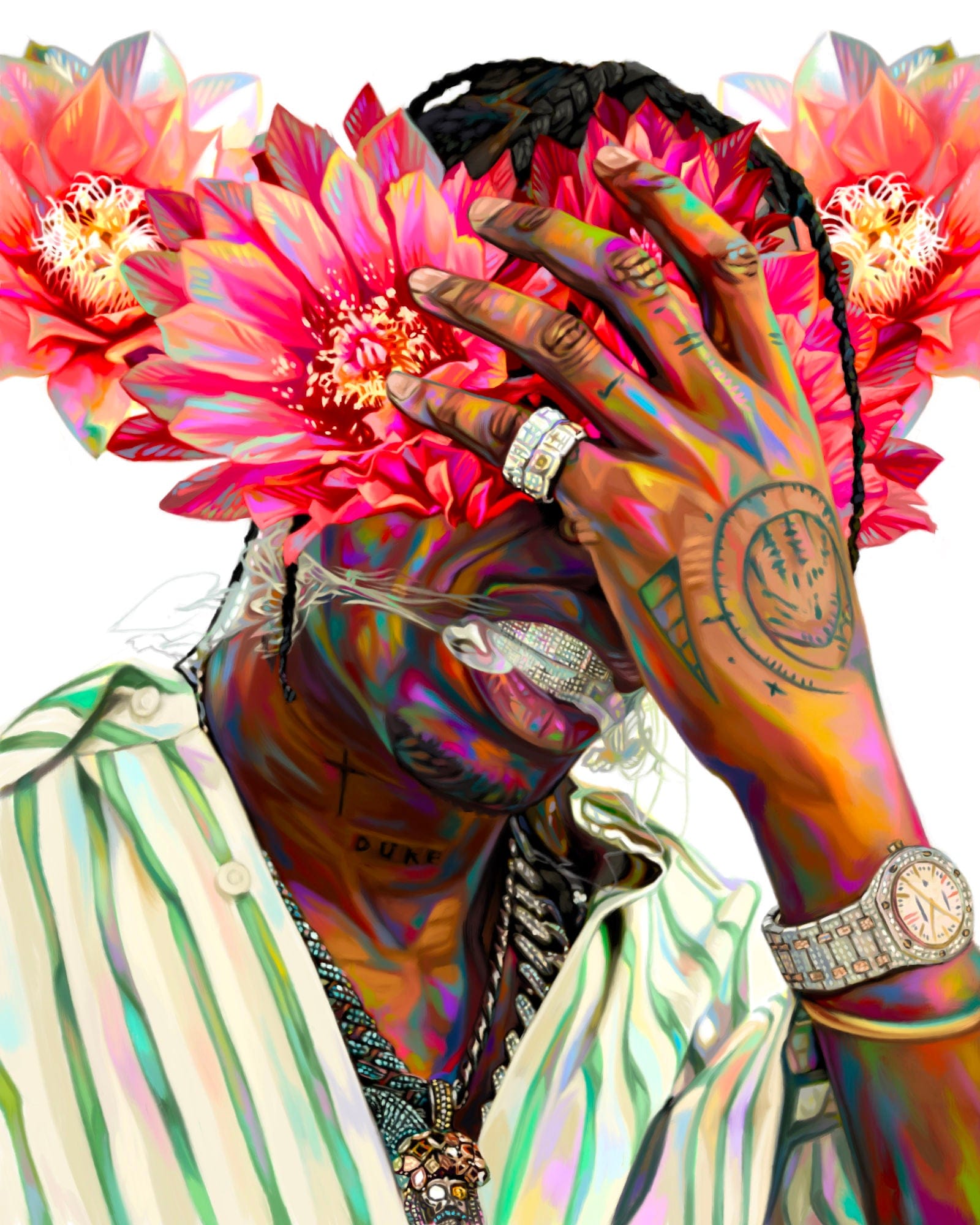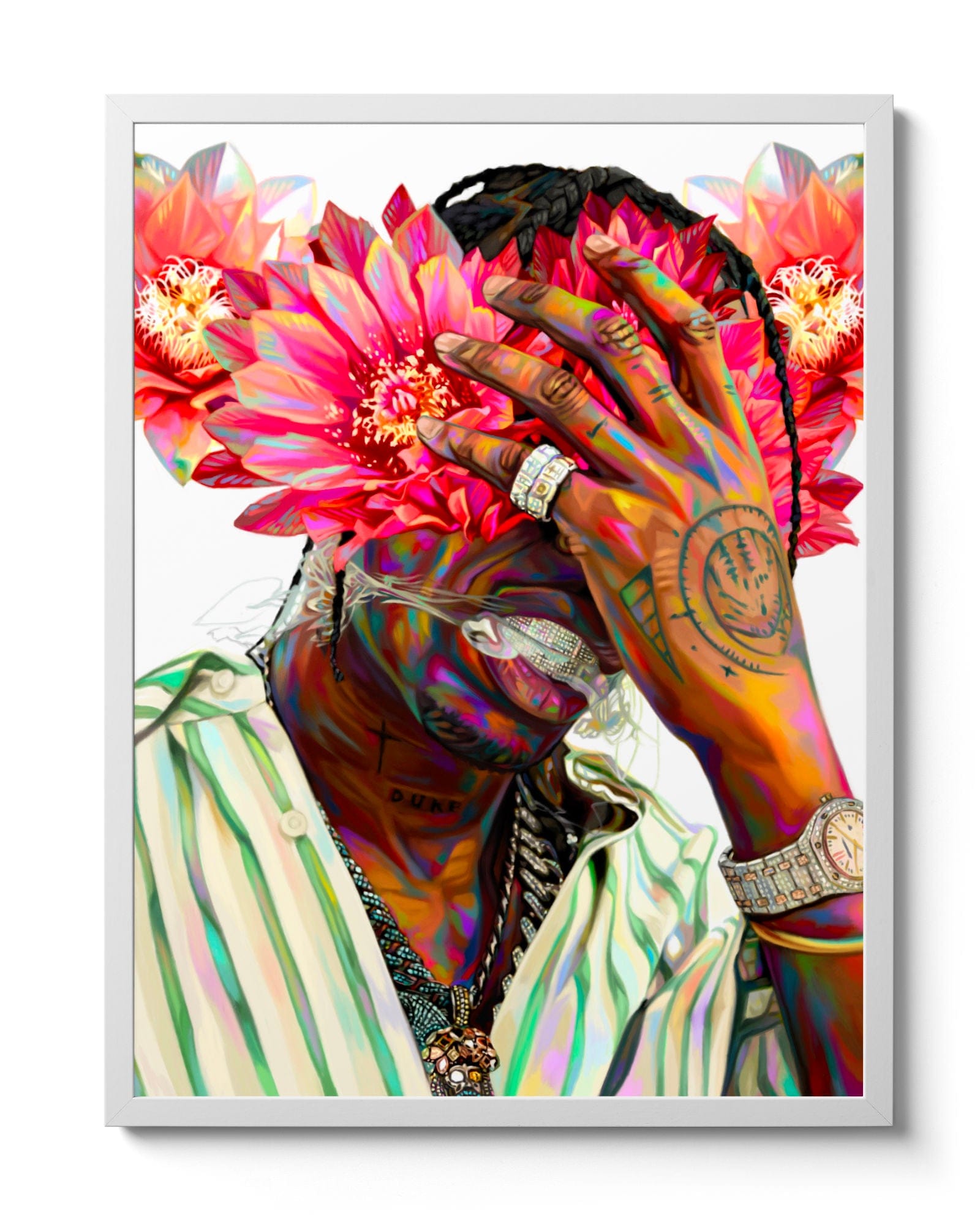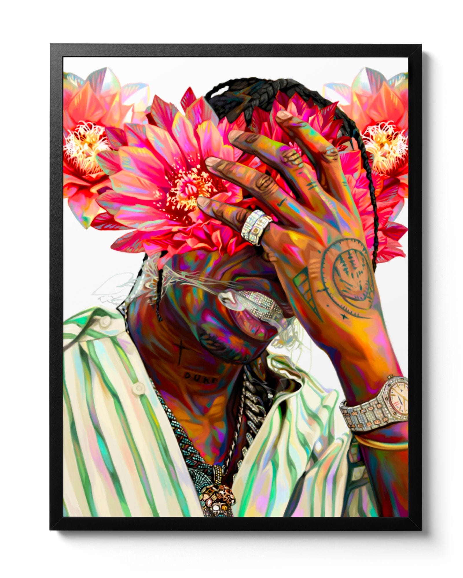 This painting was completed a year into my full-time art journey, as it felt like the perfect time to re-explore a Travis Scott inspired piece with florals. 🌸