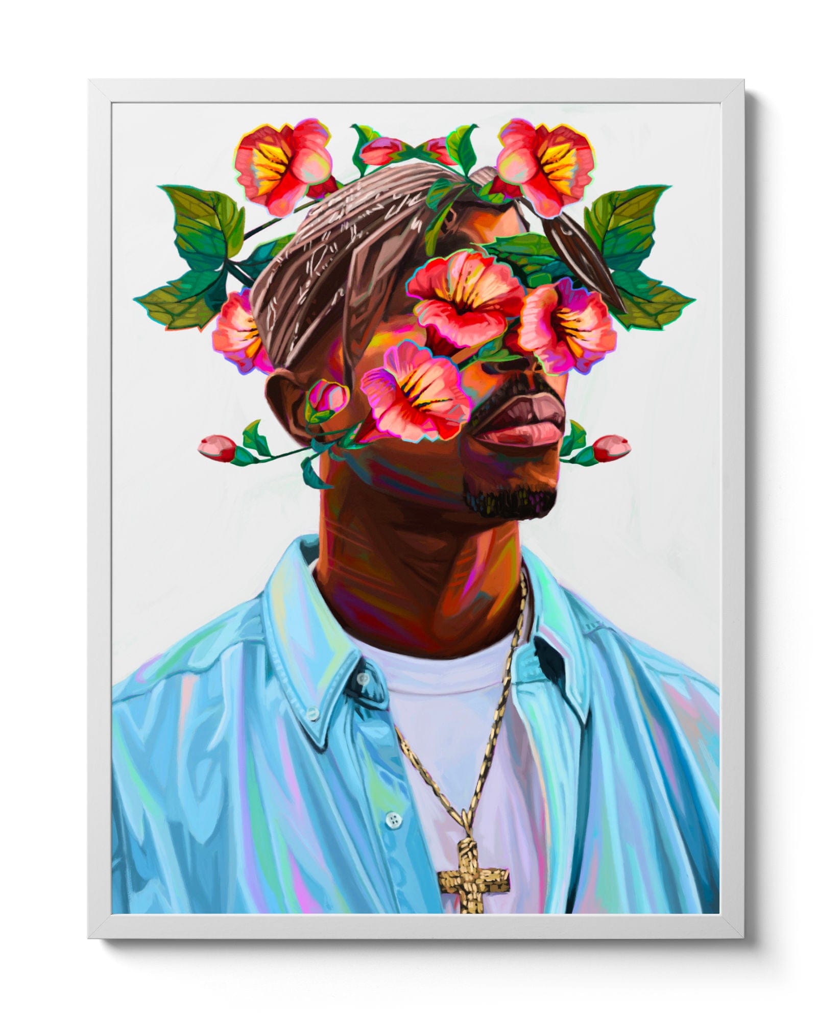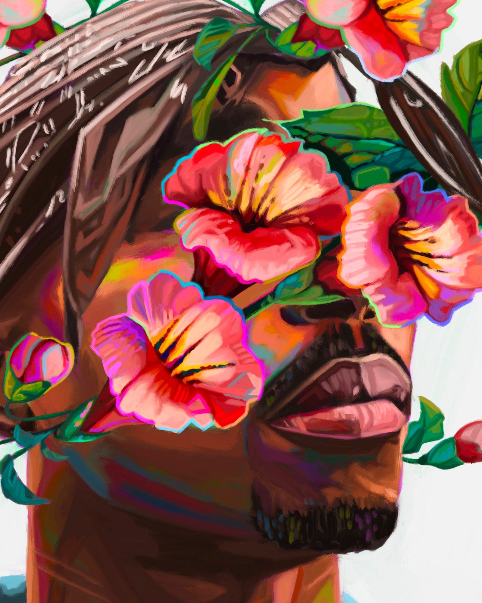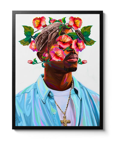 2pac was renamed Tupac Amaru Shakur at the age of 1 (originally Lesane Parish Crooks) after the Incan revolutionary Tupac Amaru II. His mother chose a powerful indigenous name to remind him that he was part of a global culture and not just from a neighbourhood. It must have become a self fulfilling prophecy because Makaveli was definitely revolutionary and continues to have influence on contemporary culture even after 20 years of his murder. I was inspired by the Incan etymology of his name and used Peru's national flower (the Inca were originally located here), the flor del Inca to adorn the legend.
