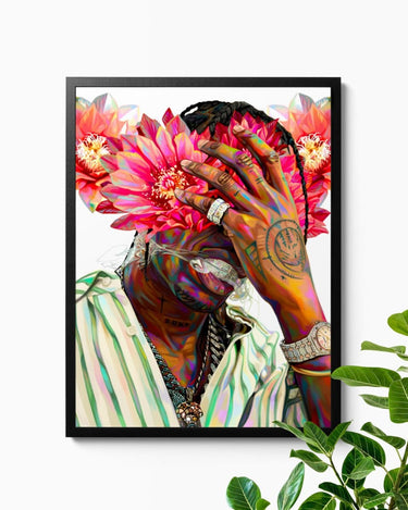 This painting was completed a year into my full-time art journey, as it felt like the perfect time to re-explore a Travis Scott inspired piece with florals. 🌸