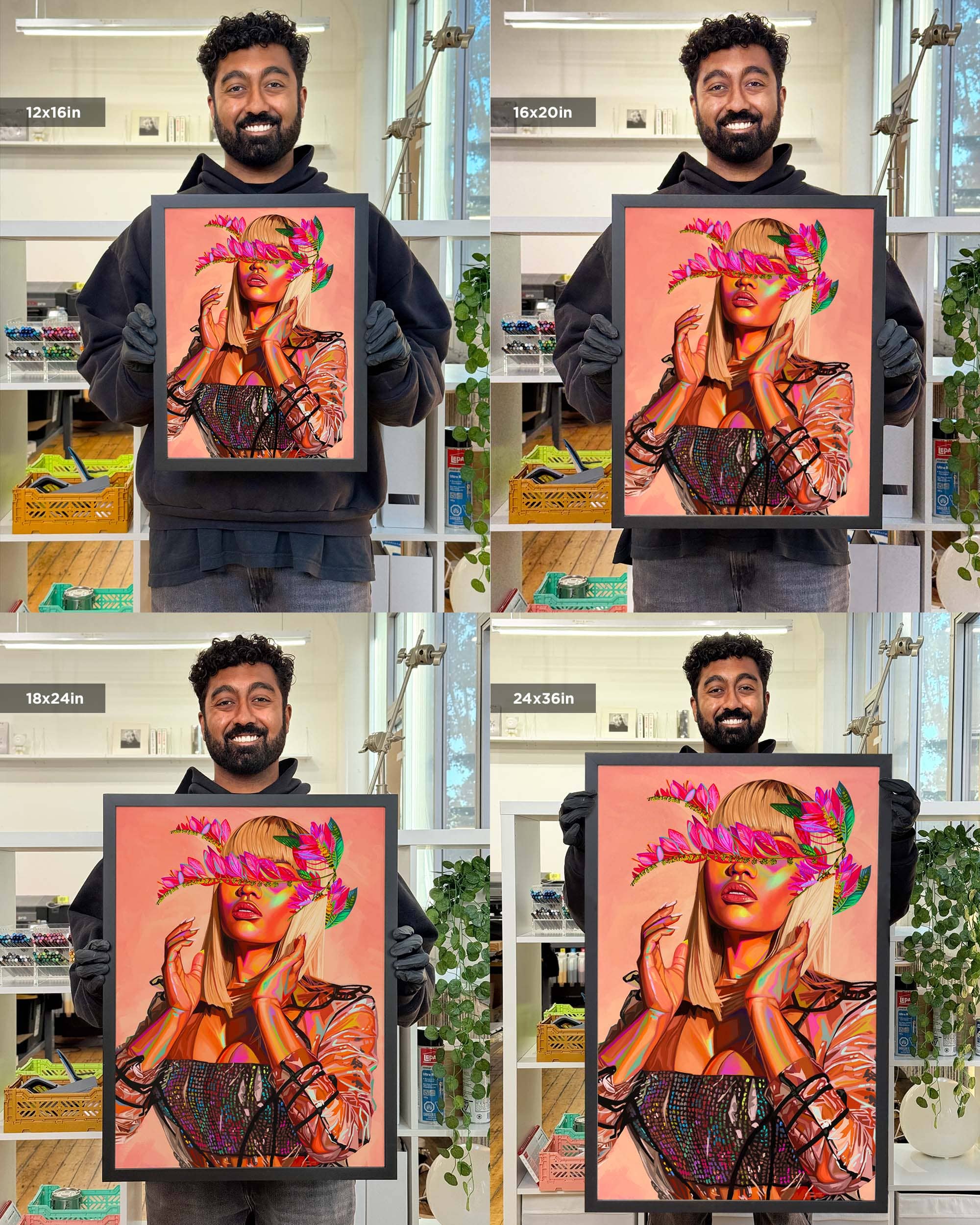 This isn't your standard poster. Be prepared to be blown away by the premium matte texture finish and brilliant colour application! They are printed with 12 pigment based-inks as opposed to the 4 dye-based inks found in standard inkjet printing. And each order is carefully rolled with tissue and securely packaged in a cardboard tube.