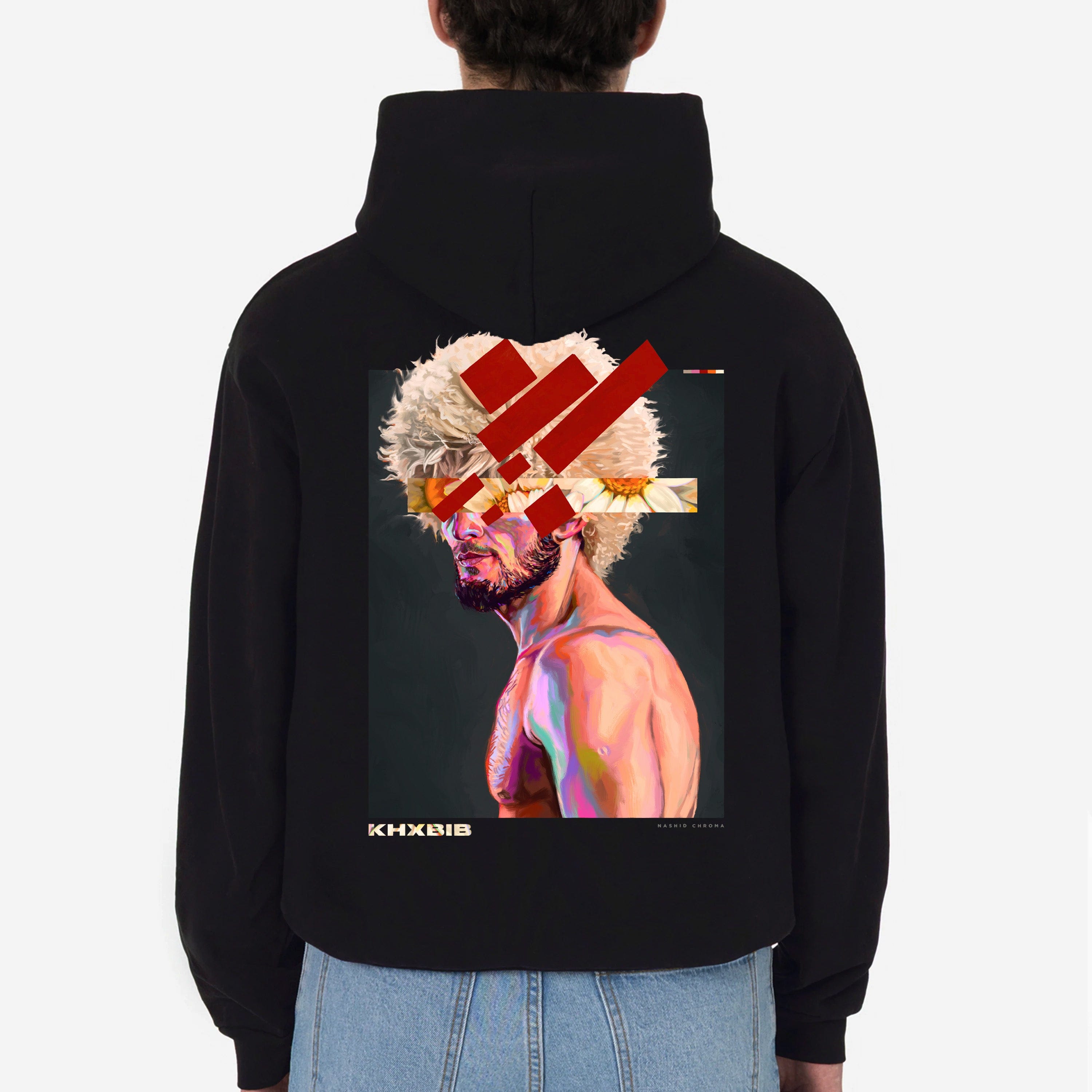 The piece is embellished with a premium silicone Nashid Chroma logo on the front, and an oversized print on the back. The size makes for an impressive statement piece in contrast to the crisp black cotton.