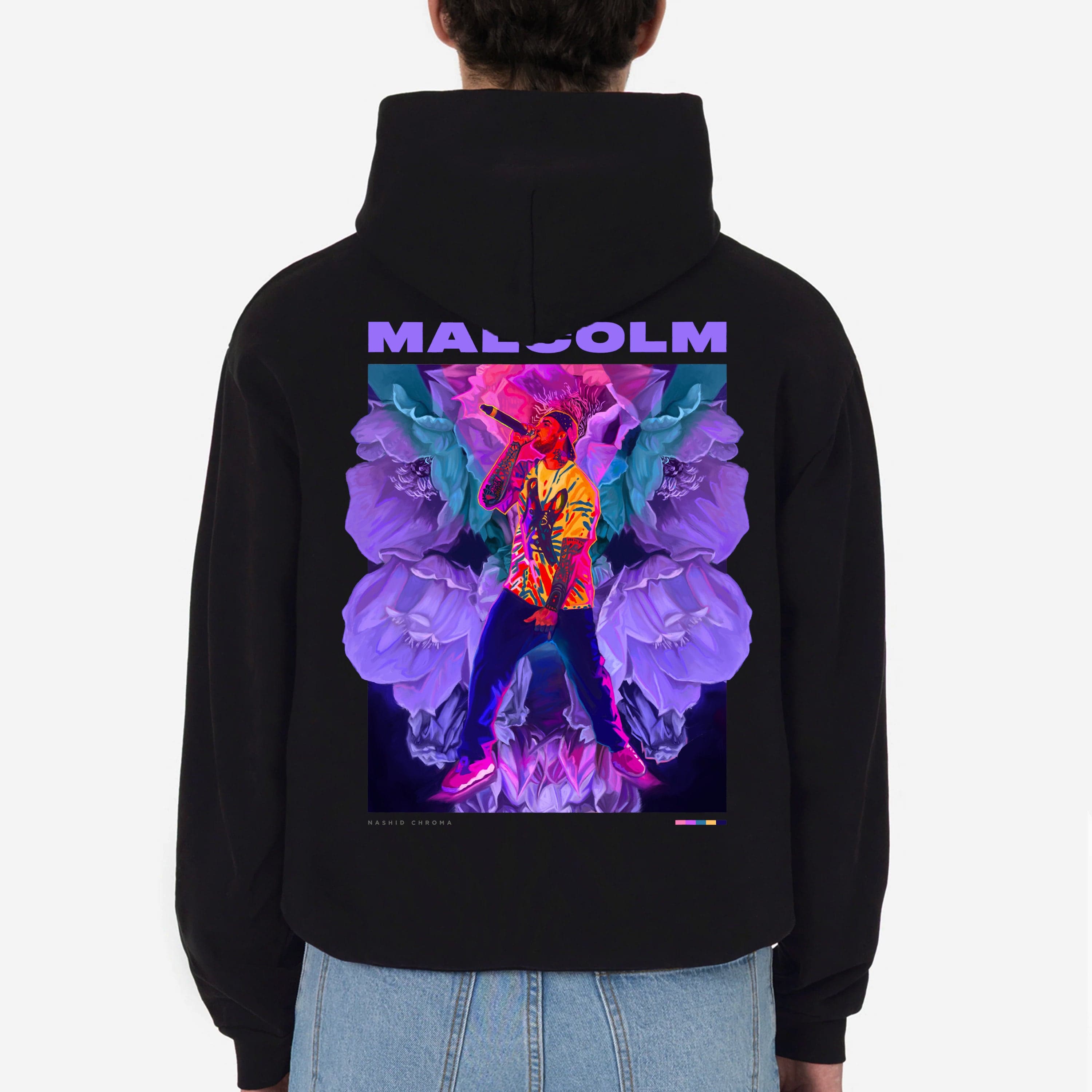 The piece is embellished with a premium silicone Nashid Chroma logo on the front, and an oversized print on the back. The size makes for an impressive statement piece in contrast to the crisp black cotton.