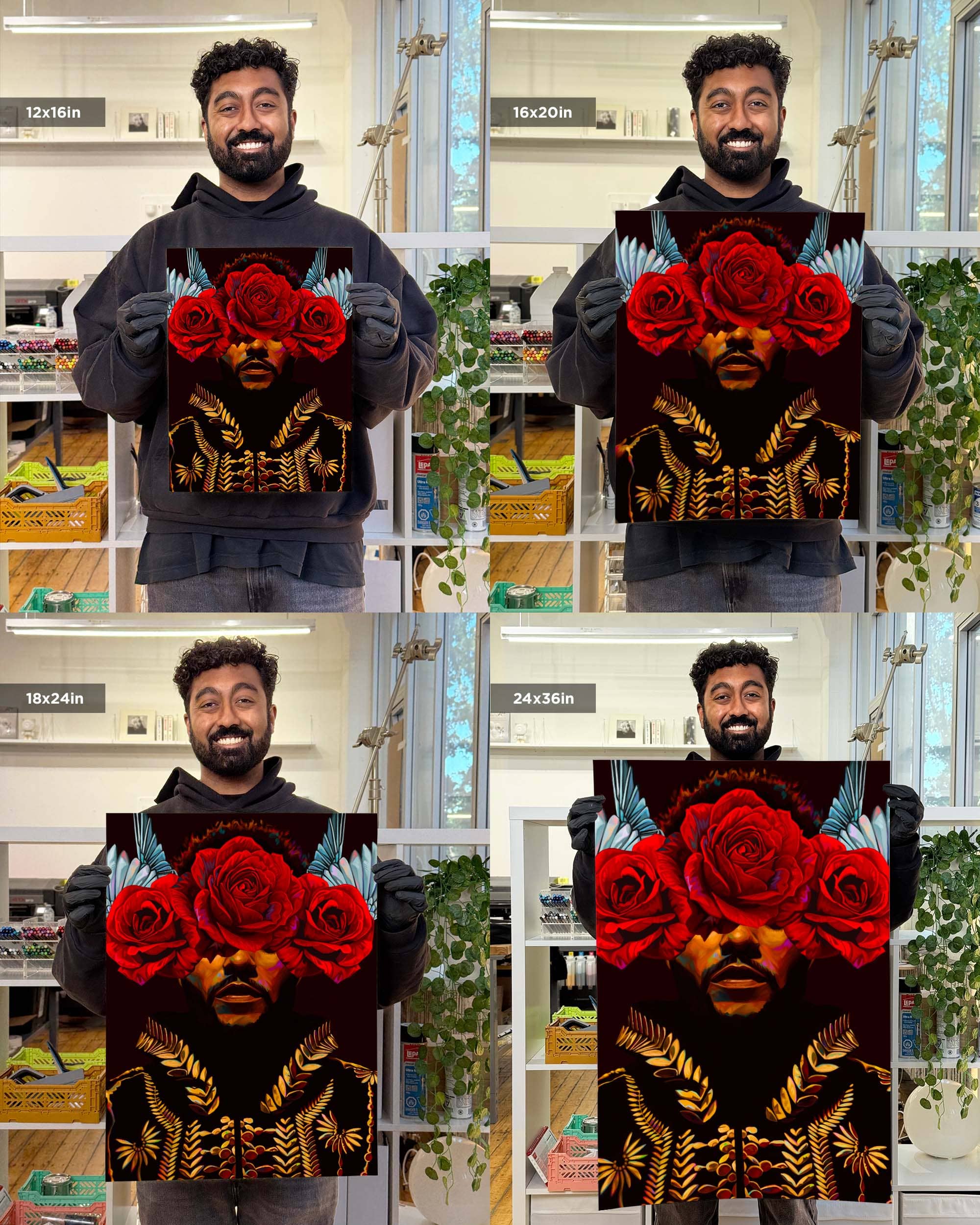 This isn't your standard poster. Be prepared to be blown away by the premium matte texture finish and brilliant colour application! They are printed with 12 pigment based-inks as opposed to the 4 dye-based inks found in standard inkjet printing. And each order is carefully rolled with tissue and securely packaged in a cardboard tube.