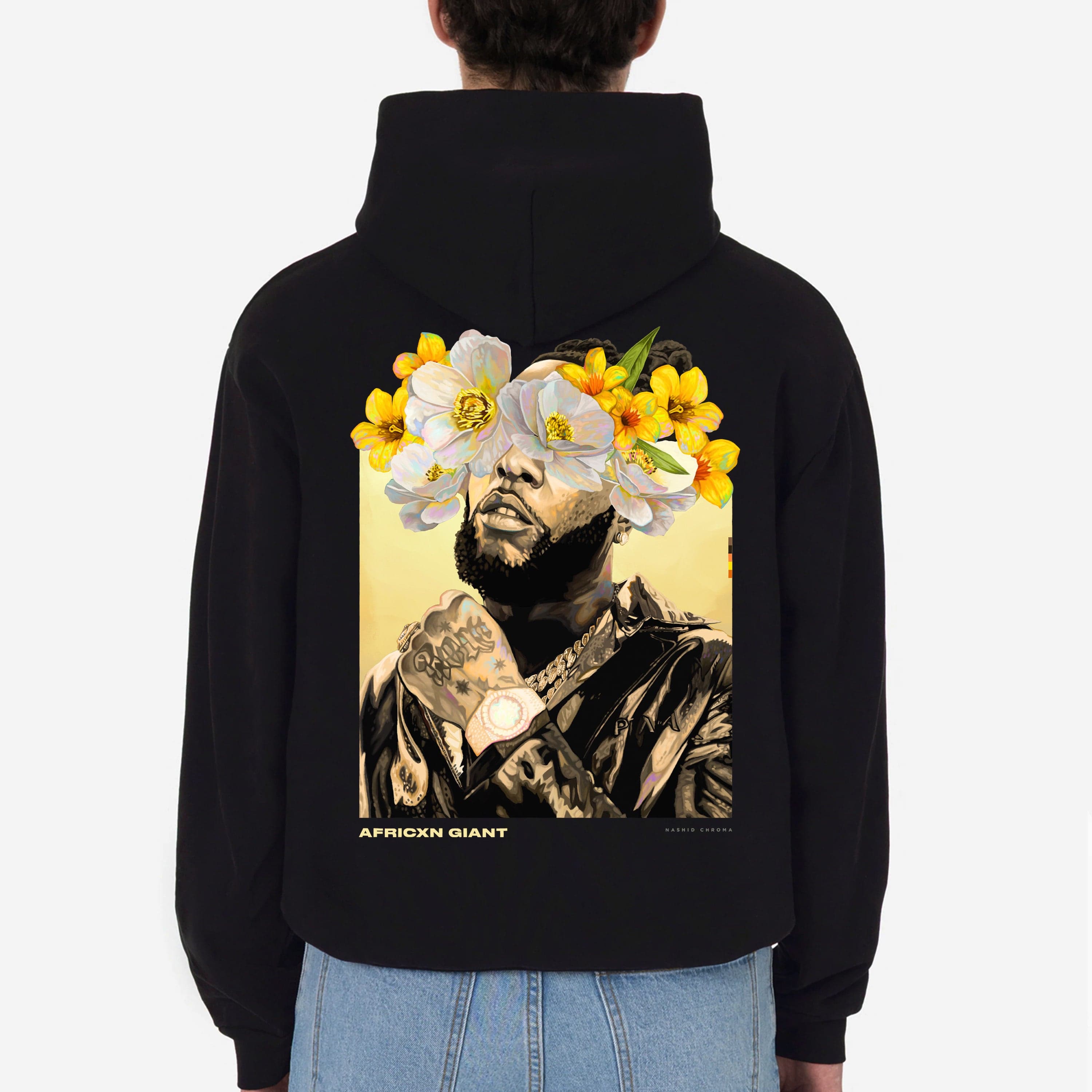 The piece is embellished with a premium silicone Nashid Chroma logo on the front, and an oversized print on the back. The size makes for an impressive statement piece in contrast to the crisp black cotton.