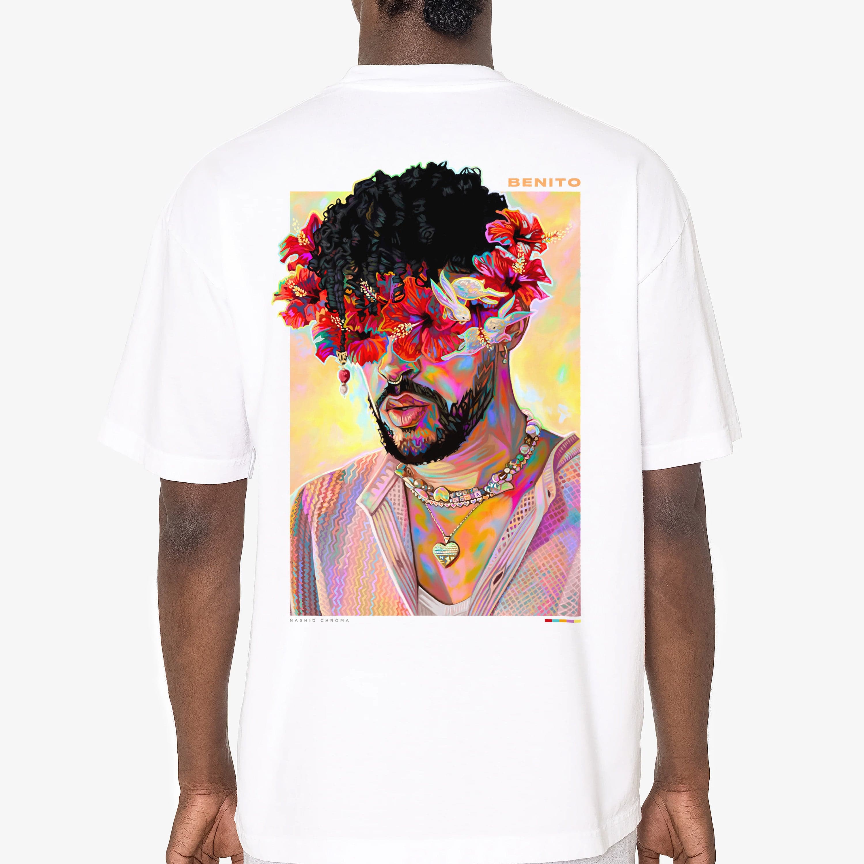 The piece is embellished with a premium silicone Nashid Chroma logo on the front, and an oversized print on the back. The size makes for an impressive statement piece in contrast to the clean tee.