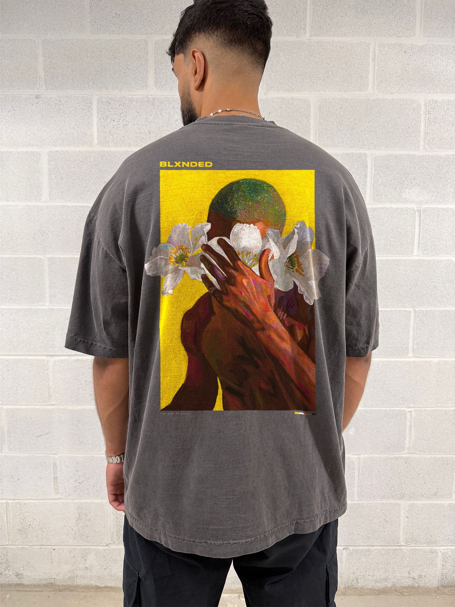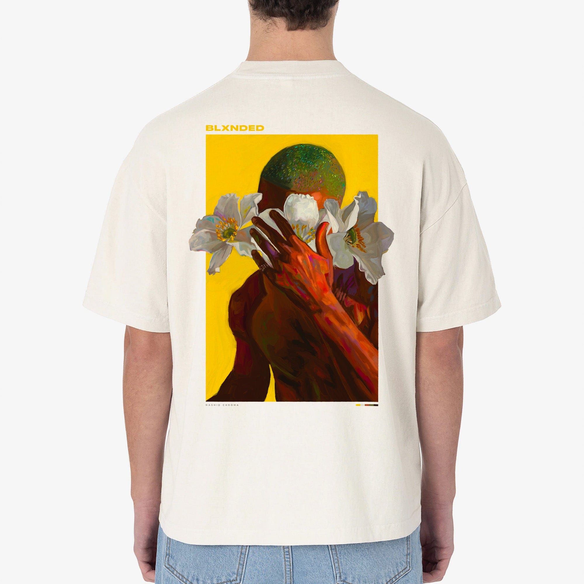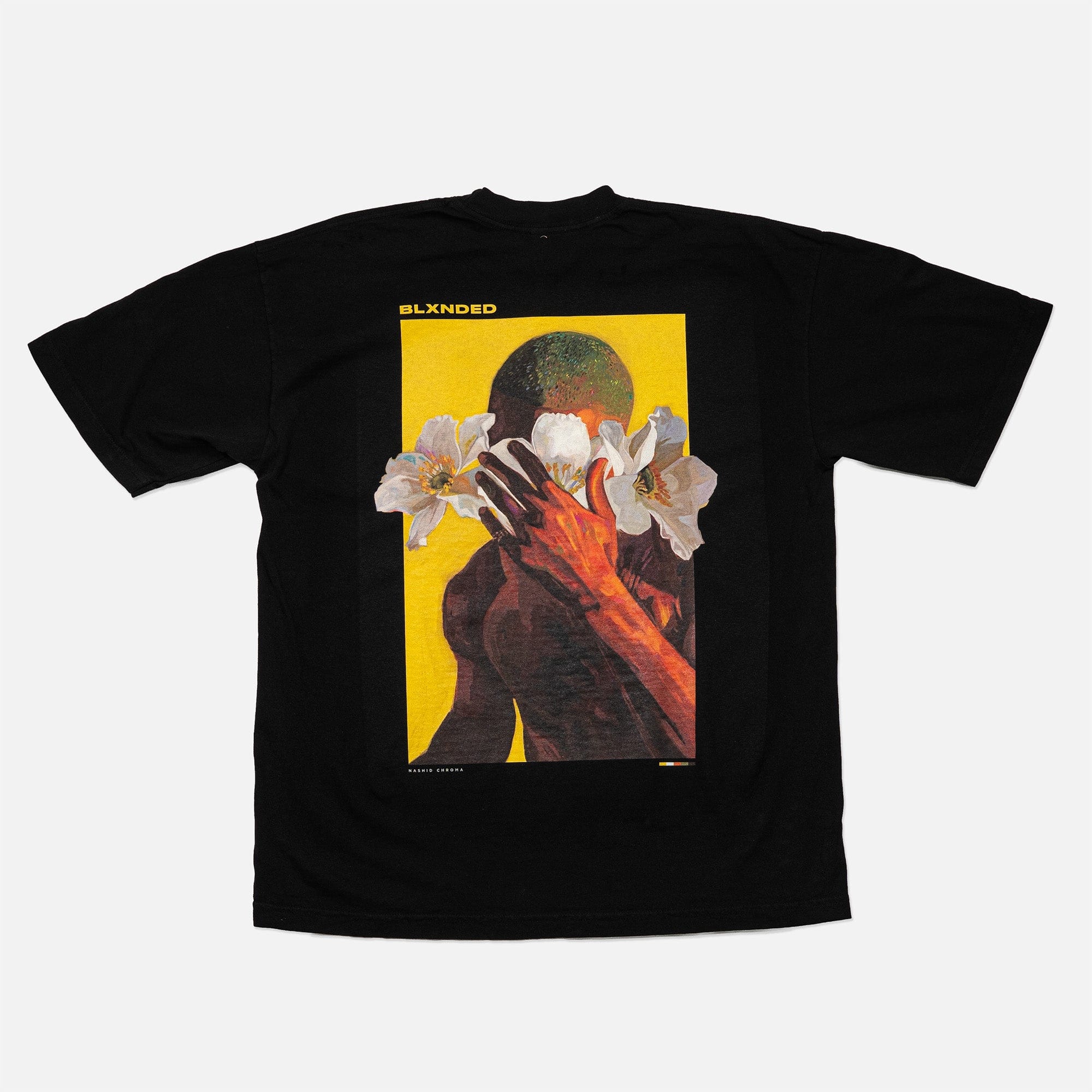 The piece is embellished with a premium silicone Nashid Chroma logo on the front, and an oversized print on the back. The size makes for an impressive statement piece in contrast to the clean tee.
