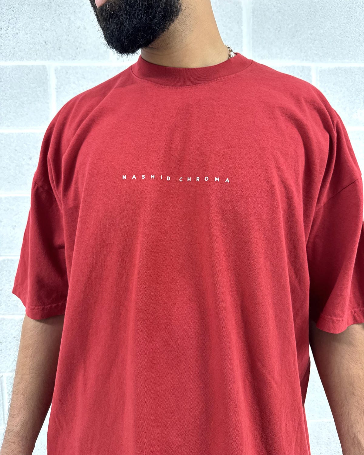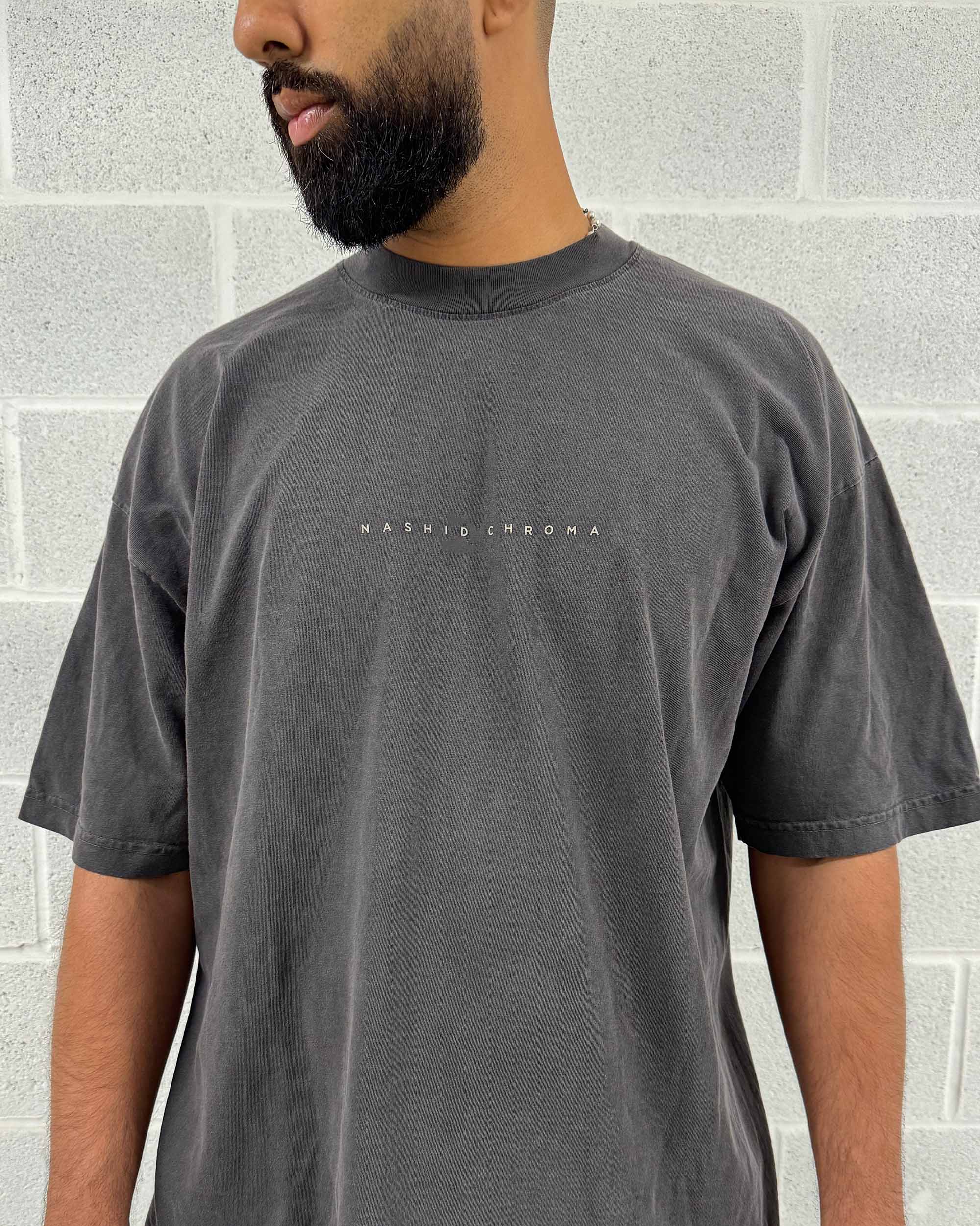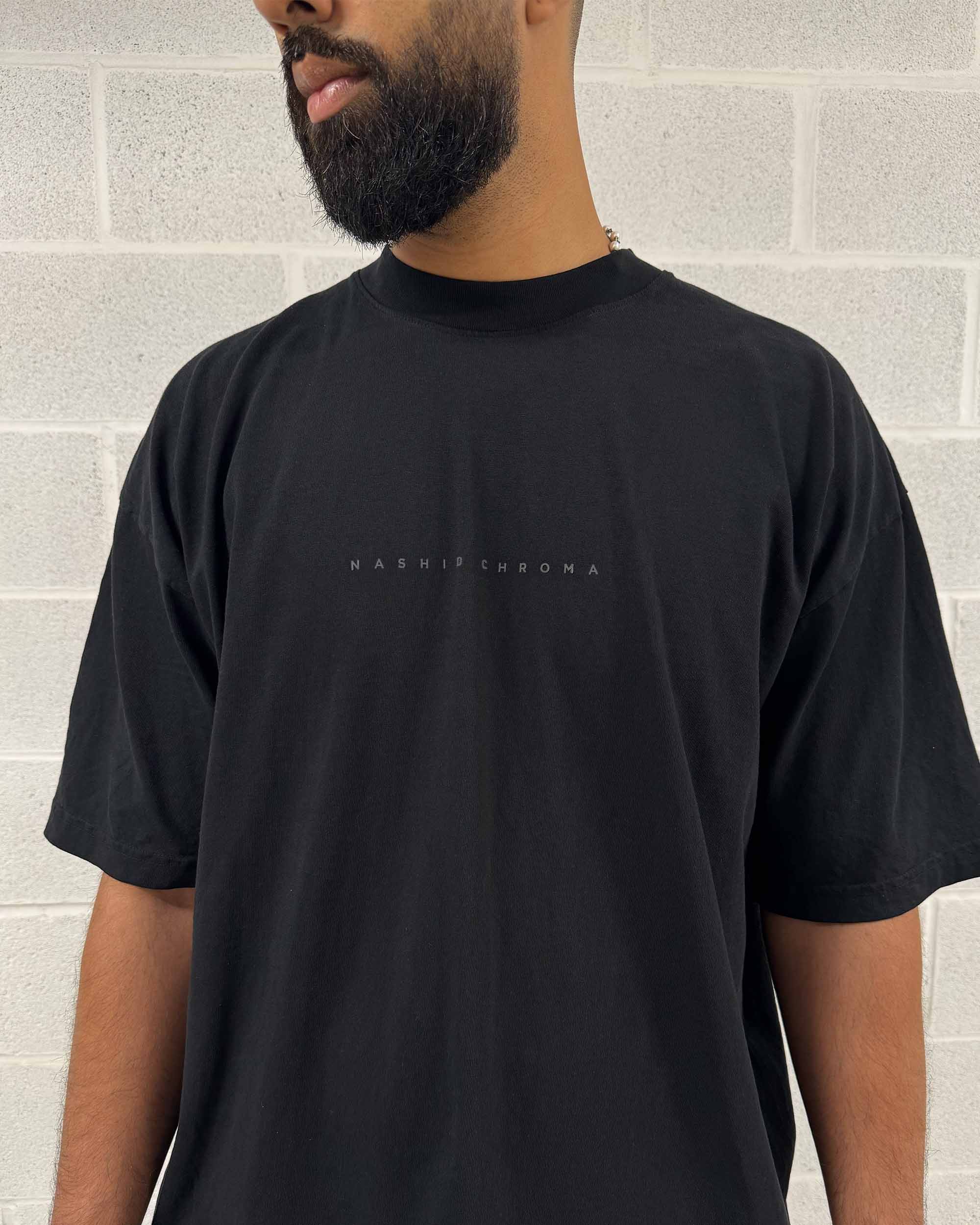The piece is embellished with a premium silicone Nashid Chroma logo on the front, and an oversized print on the back. The size makes for an impressive statement piece in contrast to the clean tee.